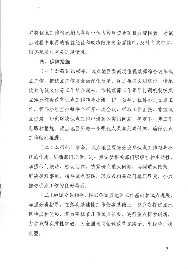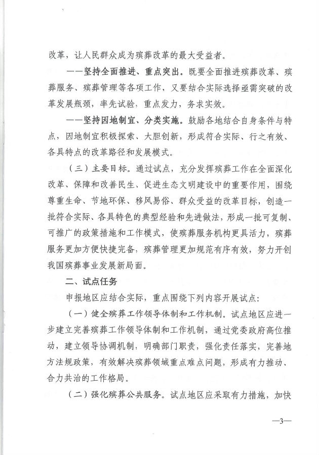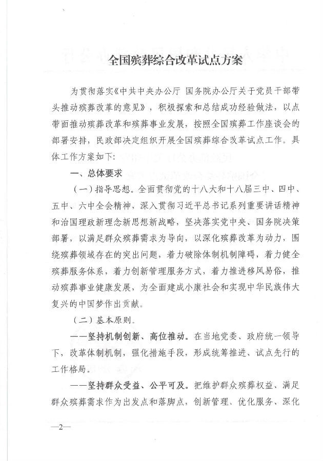 全國(guó)殯葬綜合改革試點(diǎn)方案