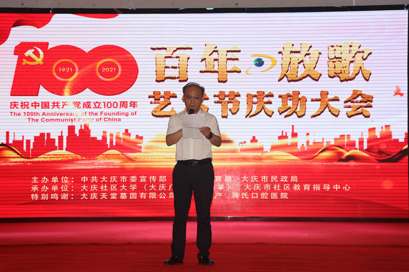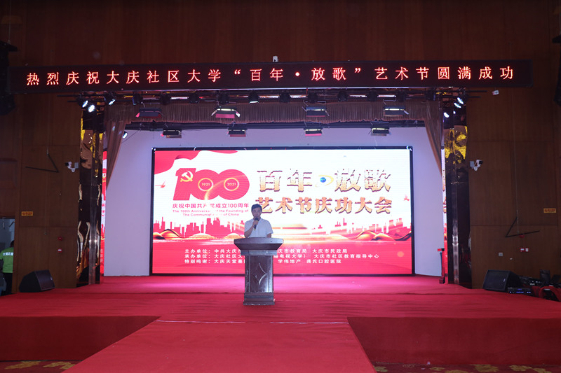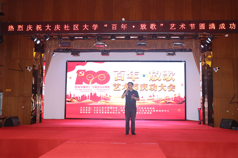 為慶祝建黨100周年,大慶社區(qū)大學(xué)舉辦的百年放歌藝術(shù)節(jié)活動(dòng),今天上午在大慶黑漁湖藝術(shù)邨落下帷幕。來自全市各藝術(shù)團(tuán)長,演員以及各路群體300余人參加了這次活動(dòng)。演出活動(dòng)前,全體起立,手持國旗,全體參會(huì)人員放聲歌唱《沒有共產(chǎn)黨就沒有新中國》。大慶社區(qū)大學(xué)校長丁文彬,黨委書記姜樹林,副校長孟偉軍,主任孫銘發(fā)表了熱情洋溢講話,并為今后如何辦一個(gè)高質(zhì)量大慶社區(qū)大學(xué),更好地為大慶人民服務(wù),為老年人創(chuàng)造幸福晚年提出了很多很好思路和方向。大會(huì)表揚(yáng)了總導(dǎo)演錢峰等人為這場(chǎng)活動(dòng)付出的辛苦。
