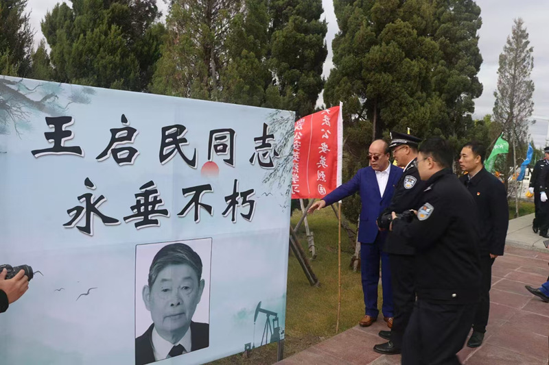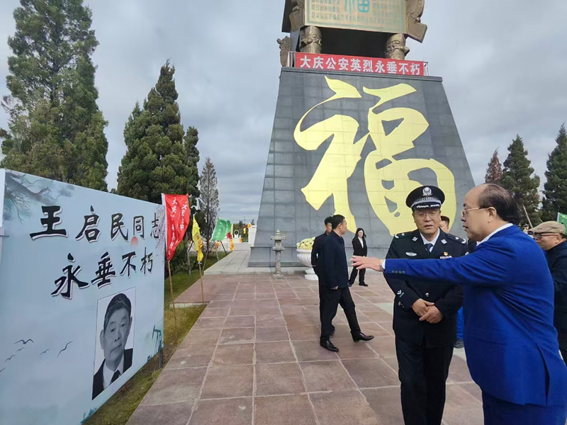 9月30日上午,省殯葬協(xié)會會長,省慈善總會副會長,天堂墓園董事長馬鑫向前來參加祭拜大慶公安英烈的大慶公安局黨委副書記王新發(fā),政治部副主任楊旭,大慶讓胡路區(qū)副區(qū)長王營,區(qū)民政局局長吳曉勇,大慶寶石花物業(yè)公司總經理,黨委書記劉鋒等領導介紹:今天準備給大慶新時期鐵人王啟民立牌建家,以此懷念這位巜最美奮斗者》巜改革先鋒》巜新時期鐵人》大慶油田公司總經理助理,副總地質師。