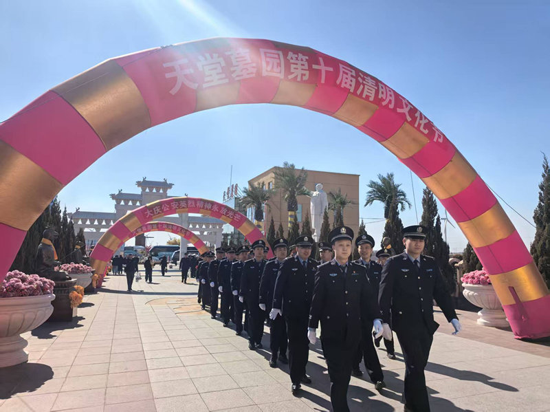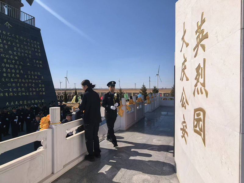 4月1日上午,大慶市公安局東安分局民警在副局長羅中宇帶領(lǐng)下來到公安英烈園為逝去的英烈戰(zhàn)友脫帽、鞠躬、敬禮、獻花。