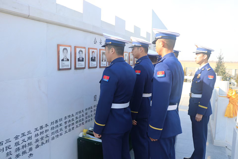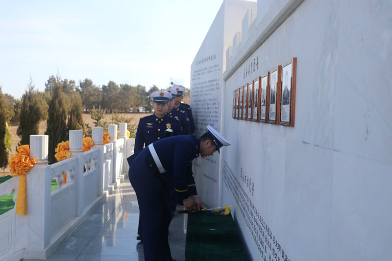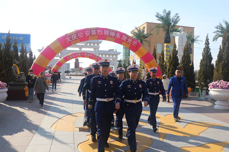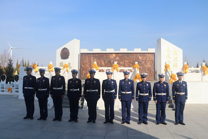 到大慶公安英烈園,向英烈們脫帽、默哀、敬禮、獻(xiàn)花。