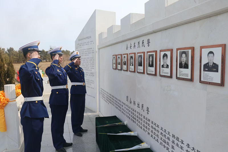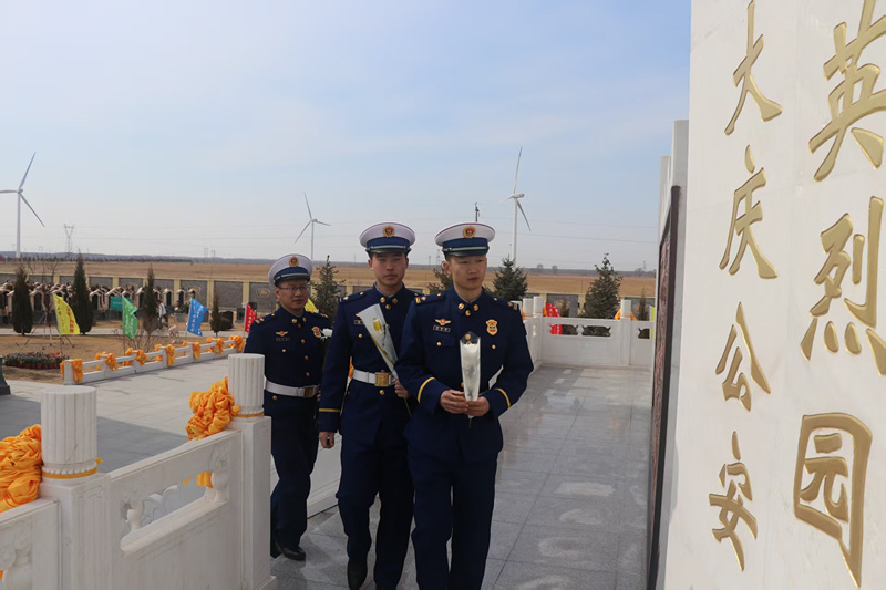 到大慶公安英烈園,向英烈們脫帽、默哀、敬禮、獻(xiàn)花。